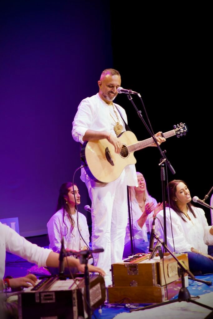 He regularly leads uplifting Friday Night Kirtans at Omnom Birmingham, and has shared kirtan across the UK and beyond at renowned festivals and venues including Mind Body Spirit Festival (NEC & London), Noisily, Soul Revolution, OM & Bass, Cambridge & Oxford Universities, and even Worcester Cathedral and more…